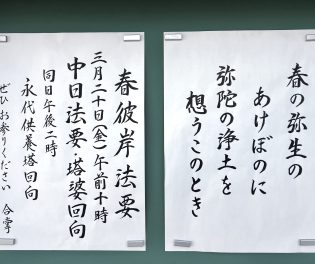 2026.03.10 「彼岸法要のご案内」と「掲示伝導(令和8ねん3月)」